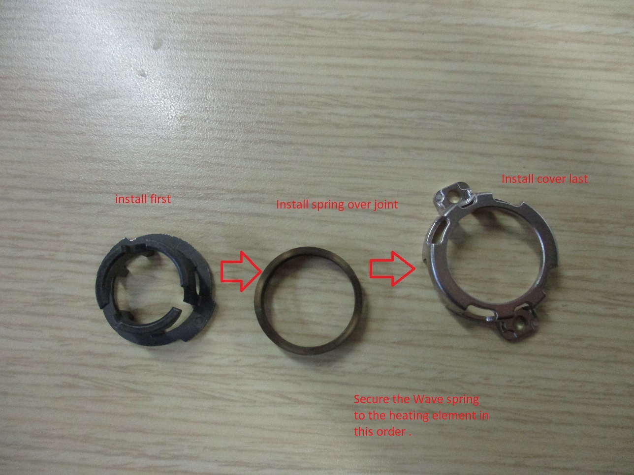 5. place the motive joint onto heating element followed by the wave spring ontop