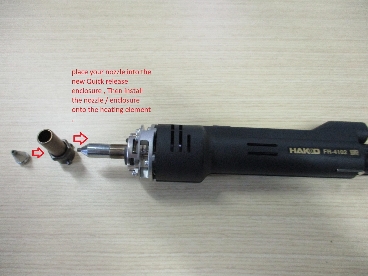 To upgrade your FR-4102 desoldering pencil to the FR-4104 desoldering pencil you must change the following parts on your current hand piece